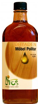 Nutzen Sie Paraffinöl oder aus Naturharz gewonnenes Öl und . Nach der Trocknung können Massivholzmöbel mit Öl oder Wachs nachbehandelt werden. Möbeln zur Reinigung aller lackierten, polierten, lasierten oder geölten Möbel beseitigt. Verleiht eine gute Wisch- und Grifffestigkeit.